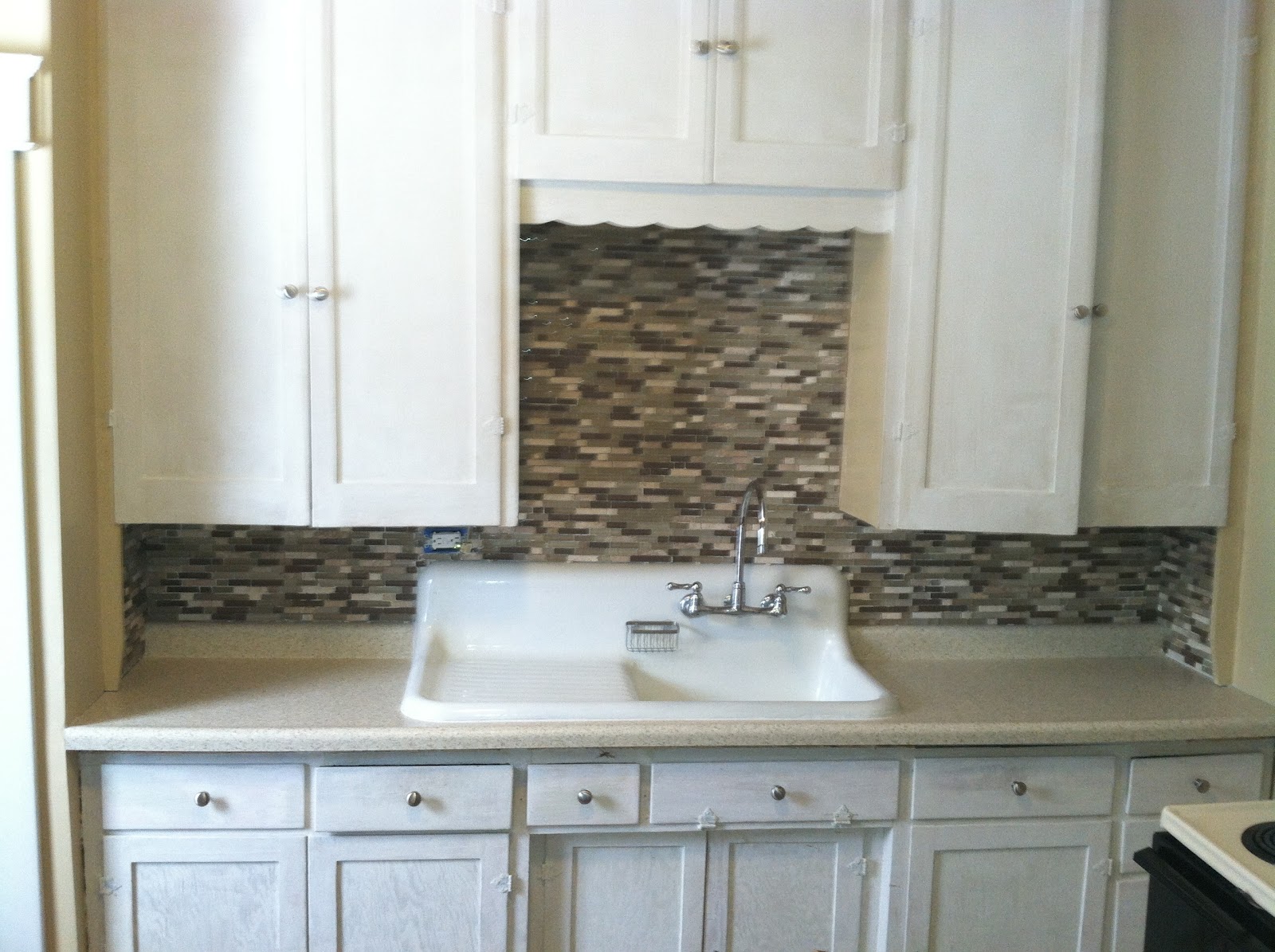 I also had to readjust the outlet. I'll show you a picture of the outlet when it is all done. It's one of those details that means almost nothing to anyone except me. The previous owners put it there to plug in the light over the "window." Since then, I have changed it to be GFCI (Hello! It's right by the sink!) and located through two layers of sheet rock and now a layer of glass tile. The original mechanism for holding it secure was designed for one layer of sheet rock only. Today, I had to get and use some of those thin little metal strips that slide in and bend over the edges to secure it in place. This is the first time I ever got them to work satisfactorily. I literally just sat and stared at the "finished" outlet (I still have the sealing and the grouting, blah, blah, blah...) for a few minutes. That's also why I am burning all these words to tell you about it.